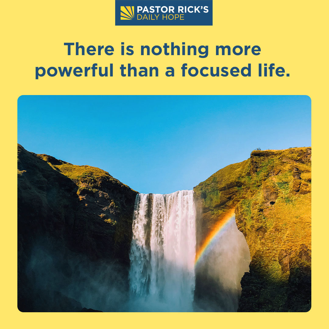 There is nothing more powerful than a focused life. It’s kind of like light. Light that is unfocused and diffused has no power. But if you focus it with a magnifying glass, you can use it to start a fire. If you focus light even more, it becomes a laser that can cut through steel and kill cancer.