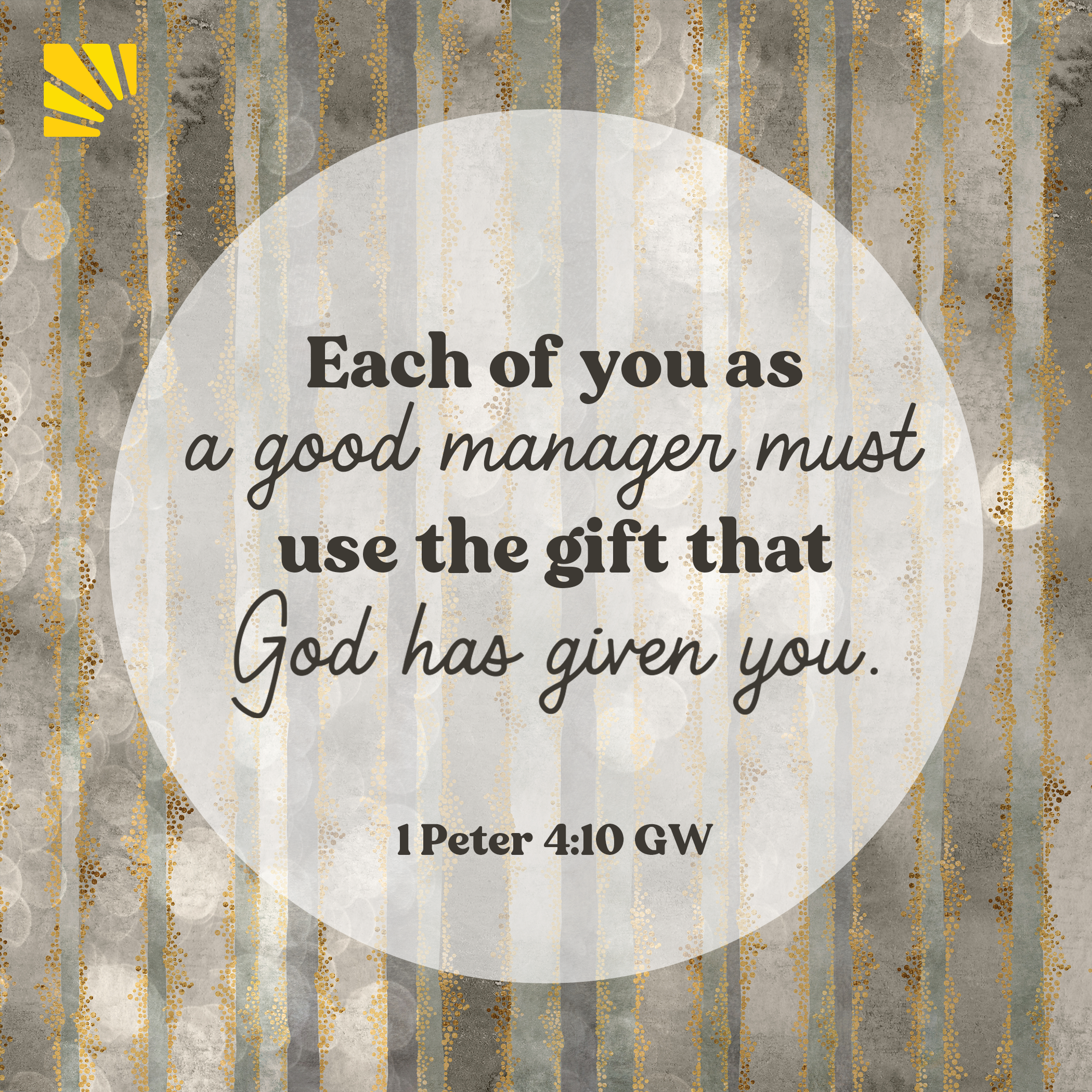 “Each of you as a good manager must use the gift that God has given you.” 1 Peter 4:10 (GW)