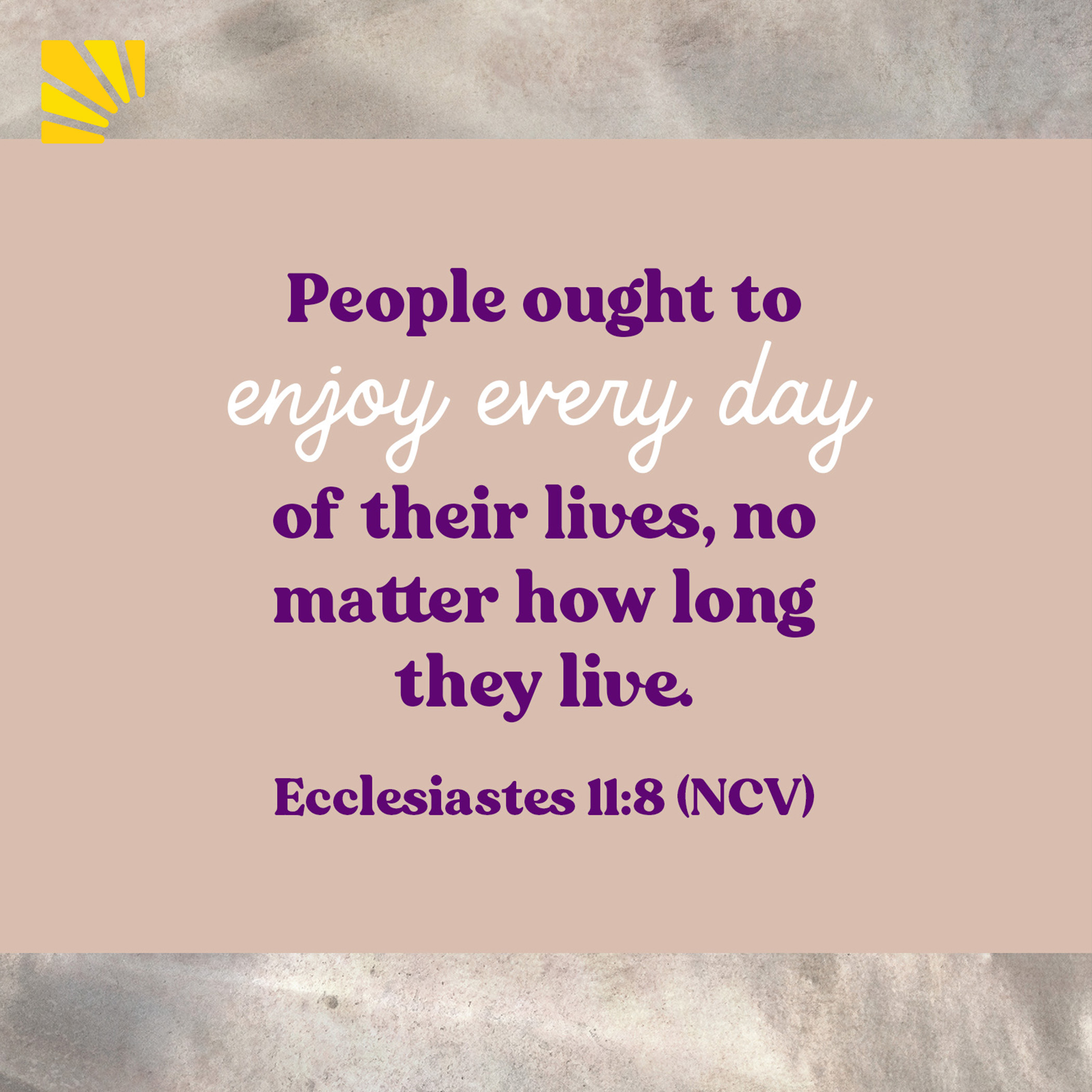 “People ought to enjoy every day of their lives, no matter how long they live.” Ecclesiastes 11:8 (NCV)