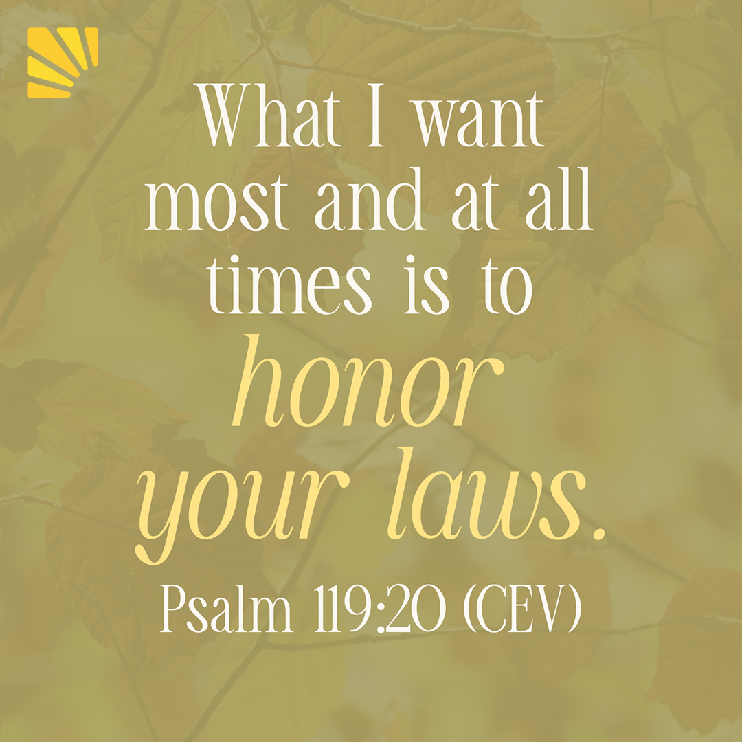 King David wrote in the book of Psalms, “My God, I want to do what you want” (Psalm 40:8 NCV), and “What I want most and at all times is to honor your laws” (Psalm 119:20 CEV).