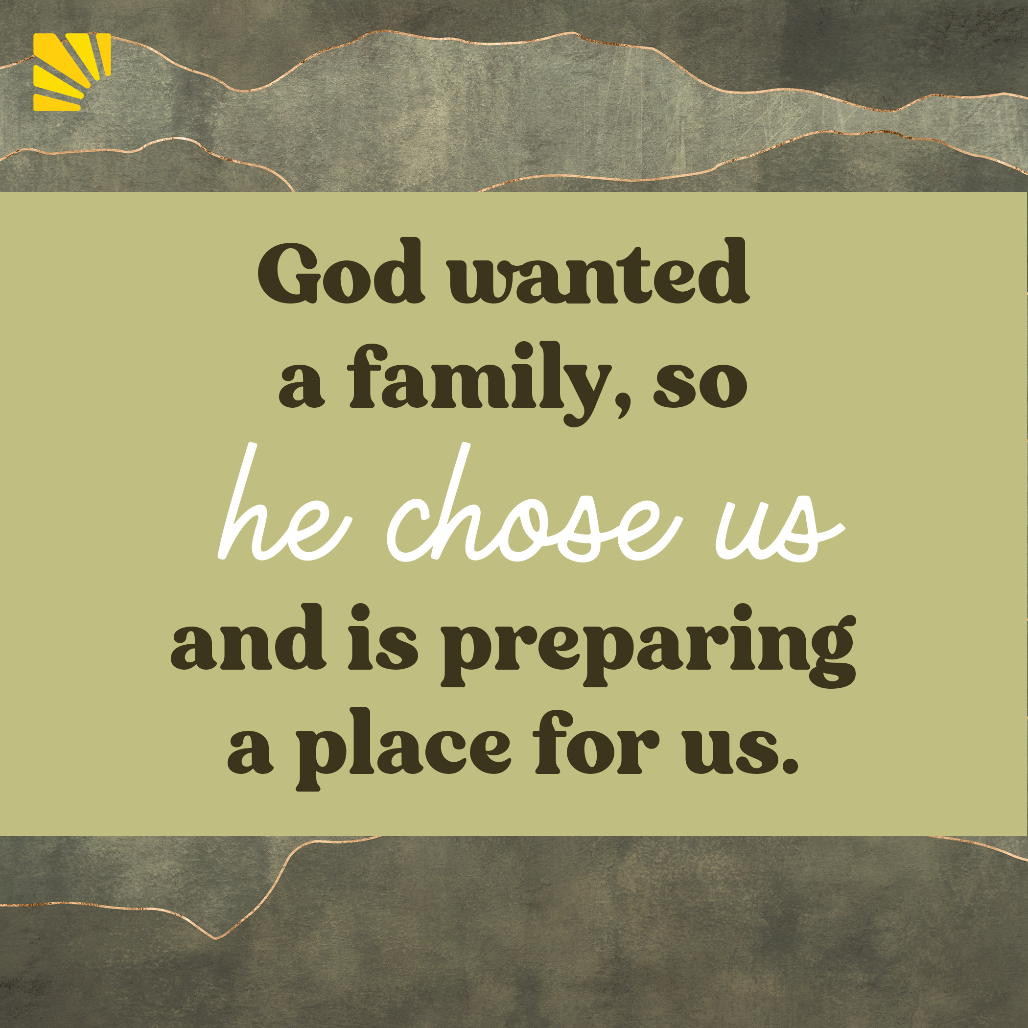 What an incredible promise! We get to be with Jesus forever. God wanted a family, so he chose us and is preparing a place for us. If you trust in Jesus as Savior and Lord of your life, that promise is for you.