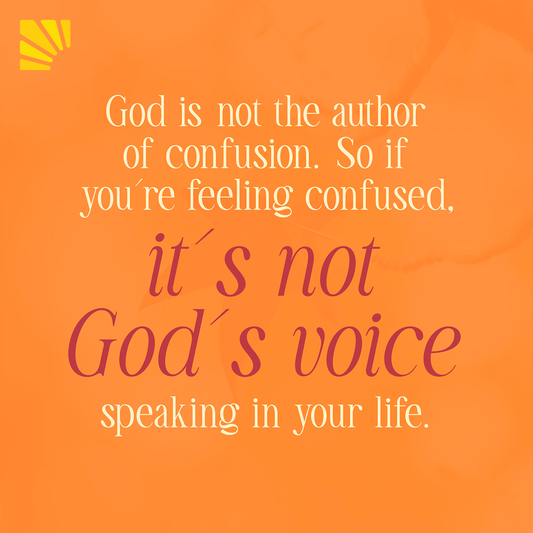 If you feel overwhelmed or confused about a decision, you might be caught up in yourself and not God’s voice. The Bible says, “God is not a God of disorder but of peace” (1 Corinthians 14:33 NIV). He is not the author of confusion. So if you’re feeling confused, guess what? It’s not God’s voice speaking in your life.