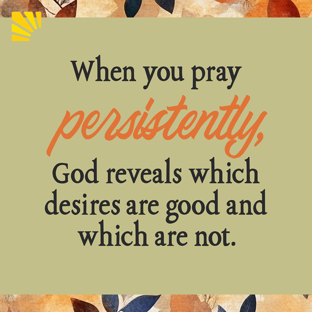 There are good desires in your life, and there are bad ones too. There are appropriate and inappropriate desires in your life, helpful and harmful, constructive and destructive. When you pray persistently, your desires are filtered, and God reveals which desires are good and which are not.