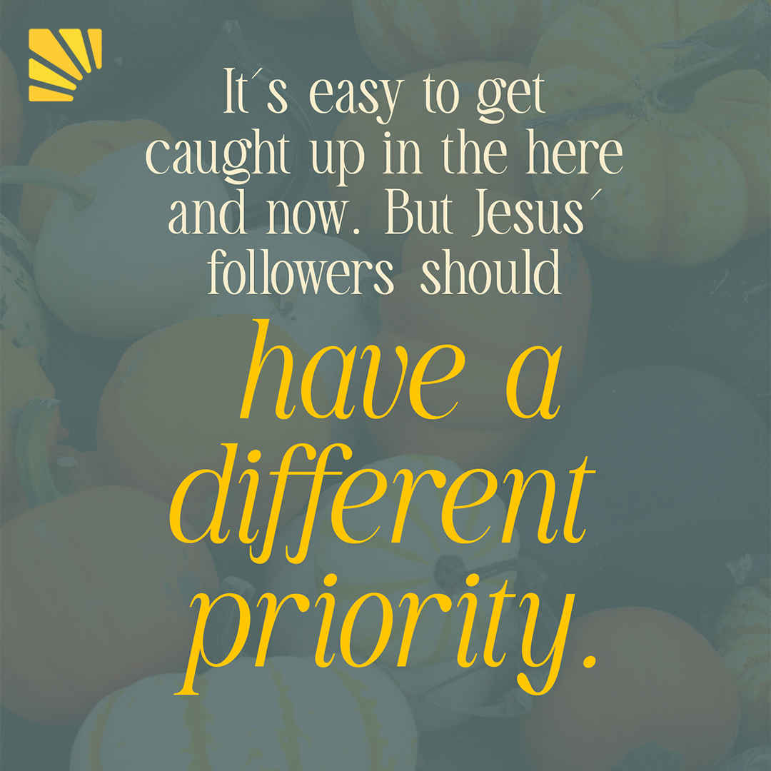 It’s easy to get caught up in the here and now—to work to accumulate wealth or power or prestige. But Jesus’ followers should have a different priority, an eternal priority.
