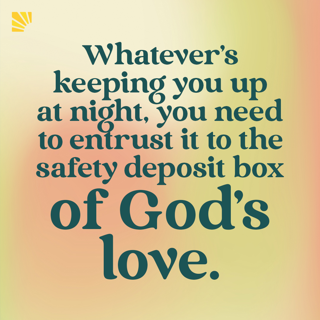 So what do you need to entrust to God today? I’ll tell you what it is—it’s whatever you’re worrying about. Whatever’s keeping you up at night, you need to entrust it to the safety deposit box of God’s love.