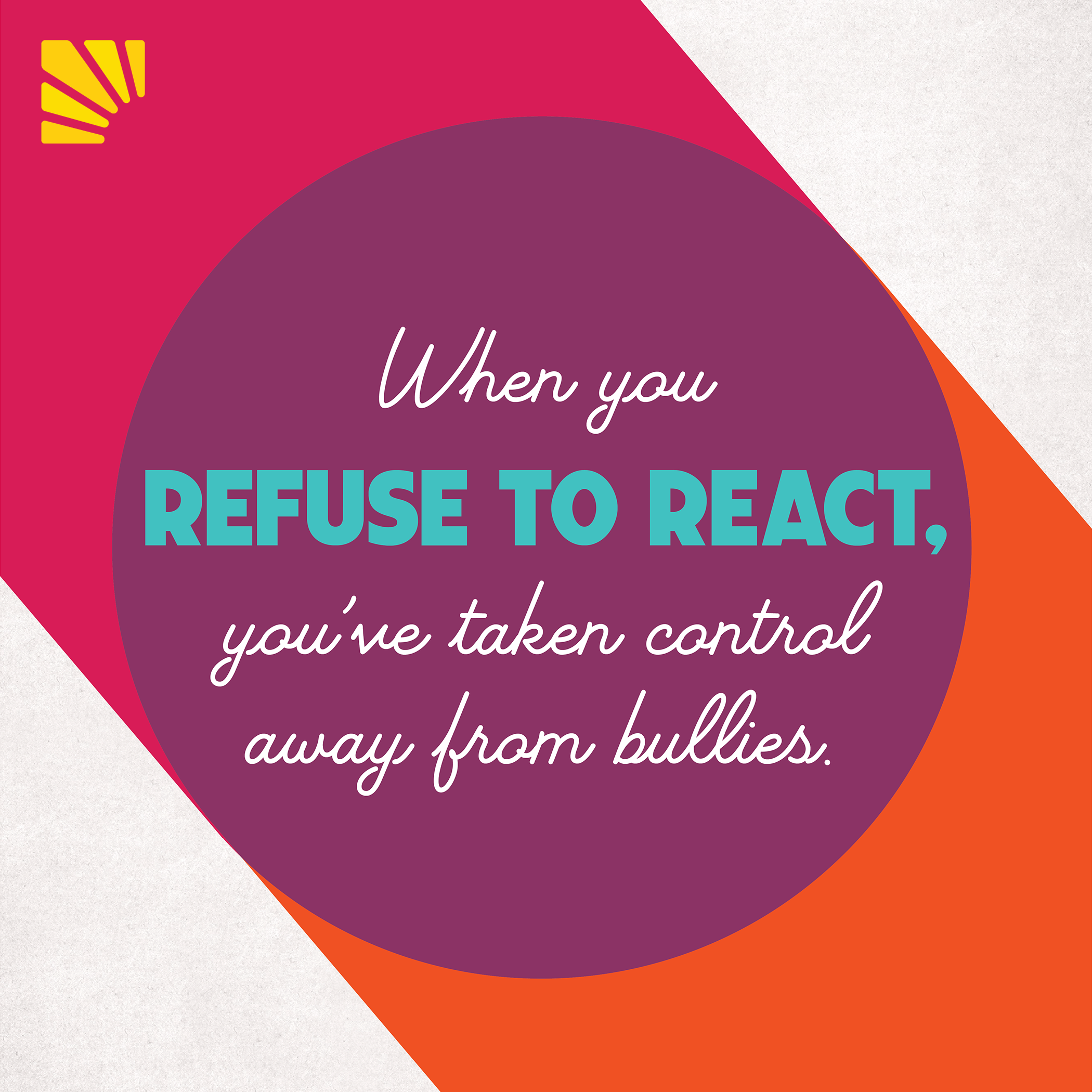 People who are bullies want to hook you. They want to get your attention and engage you—and then attack. They can’t stand it if you ignore them! This is also true online. It’s often hard to figuratively walk away from an attack in a comment thread on Facebook. But when you refuse to react, you’ve taken control away from bullies. If they can’t engage you, then they can’t control you.