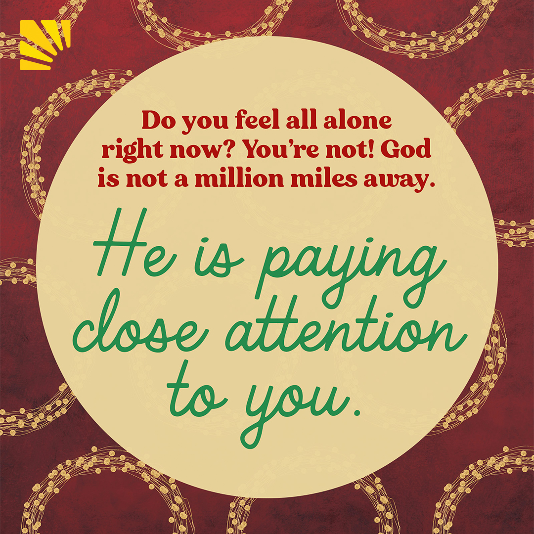 Do you feel all alone right now? You’re not! God is not a million miles away. He is paying close attention to you. God notices you because you matter to him.