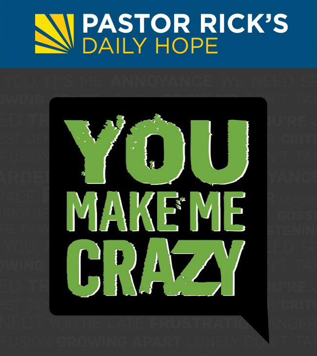 You Make Me Crazy focuses on surviving relationships God's way. We all have "crazymakers" in life, people who bring chaos and conflict into our lives. People who simply get on our nerves. These biblical lessons from Pastor Rick will help bring peace to your relationships.