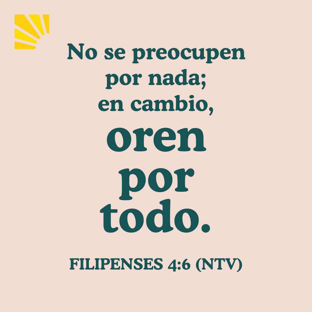 "No se preocupen por nada; en cambio, oren por todo. Díganle a Dios lo que necesitan y denle gracias por todo lo que él ha hecho". Filipenses 4:6 (NTV)