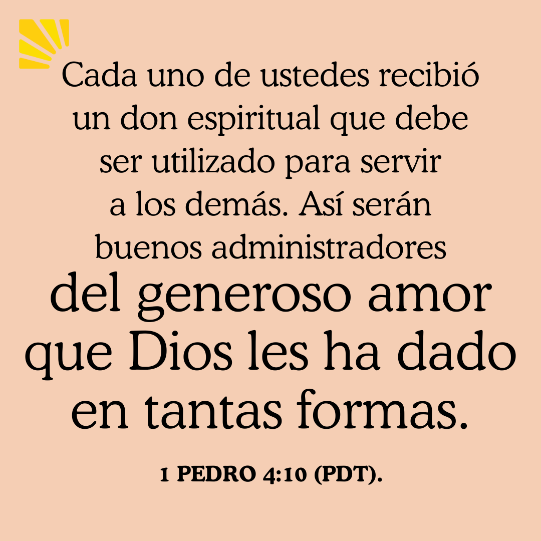 “Cada uno ponga al servicio de los demás el don que haya recibido, administrando fielmente la gracia de Dios en sus diversas formas”. 1 Pedro 4:10 (NVI)