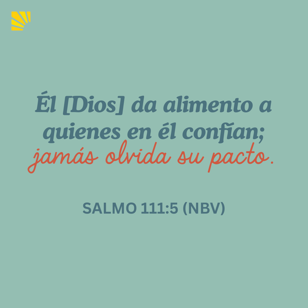 “Él [Dios] da alimento a quienes en él confían; jamás olvida su pacto”. Salmo 111:5 (NBV)