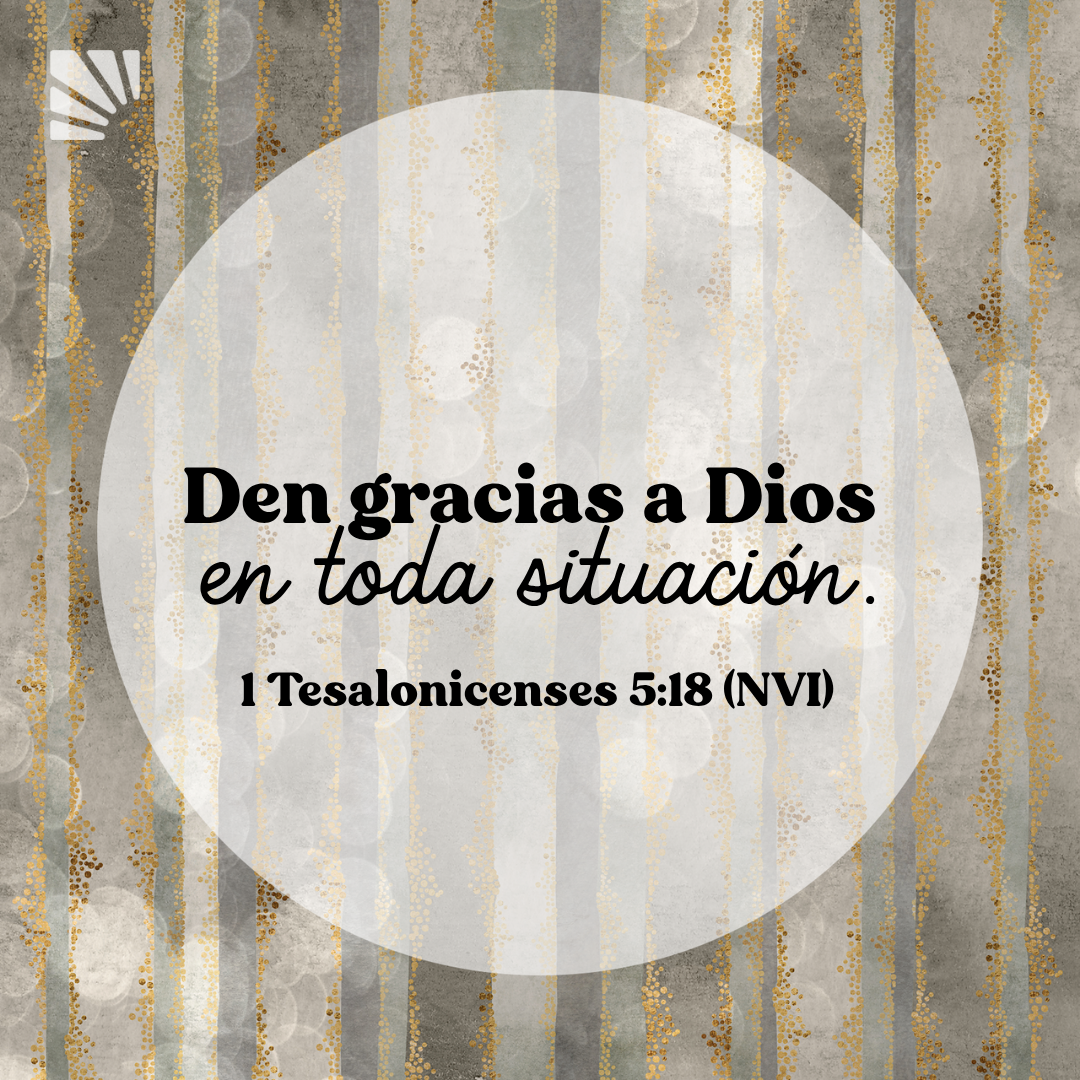 “Den gracias a Dios en toda situación, porque esta es su voluntad para ustedes en Cristo Jesús”. 1 Tesalonicenses 5:18 (NVI)