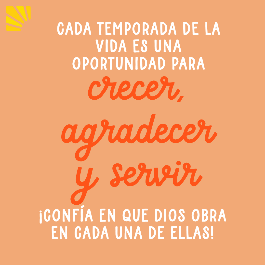 Te animo a hacer hoy esta oración: “Jesucristo, quiero crecer en ti y desarrollarme espiritualmente. Por favor, usa cada temporada de mi vida para ayudarme a madurar en fe. ¿Me enseñarías a confiar en ti en cada temporada, incluso en las difíciles? Señor, te invito a ser el centro de cada temporada de mi vida, para que puedas construir el carácter que llevaré conmigo al cielo. En el nombre de Cristo Jesús te pido estas cosas. Amén”.